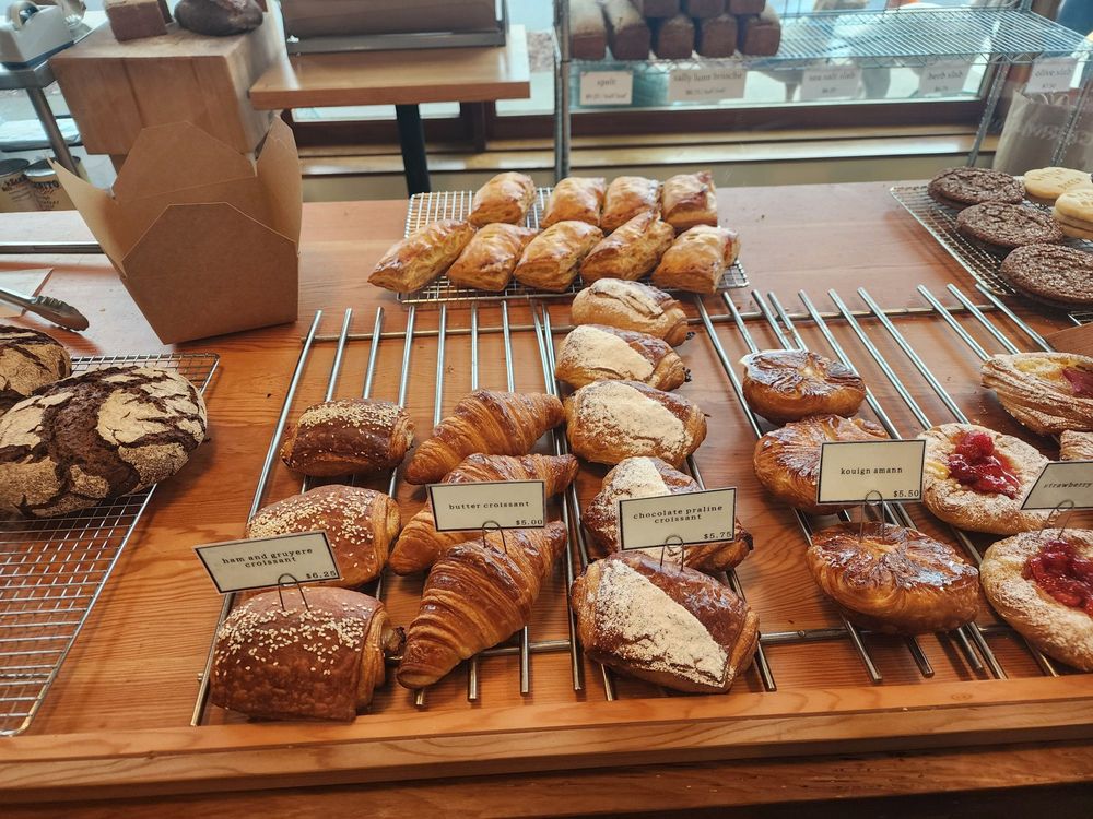 “ Can't believe it's taken me so long to get here but I am so glad I finally got the chance to try this place! The aroma when you first walk in was intoxicating! There was a short line when we came in late morning this weekend but it moved quick. Lots of folks were there taking advantage of the outdoor seating and indoors as well. Prices were reasonable, we got a few different pastries to share but my favorites were the chocolate praline croissant and hazelnut fruit financier! Can't wait to come back for the loaves. ”
